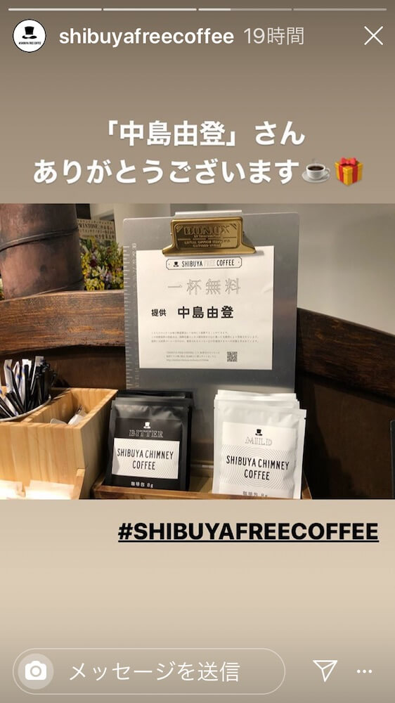 SHIBUYA FREE COFFEEのInstagramで提供者の名前が表示されてました!