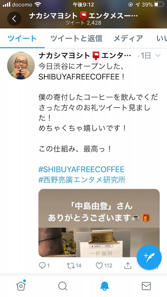 たくさんの方が「#SHIBUYAFREECOFFEE」でツイートをしてました。